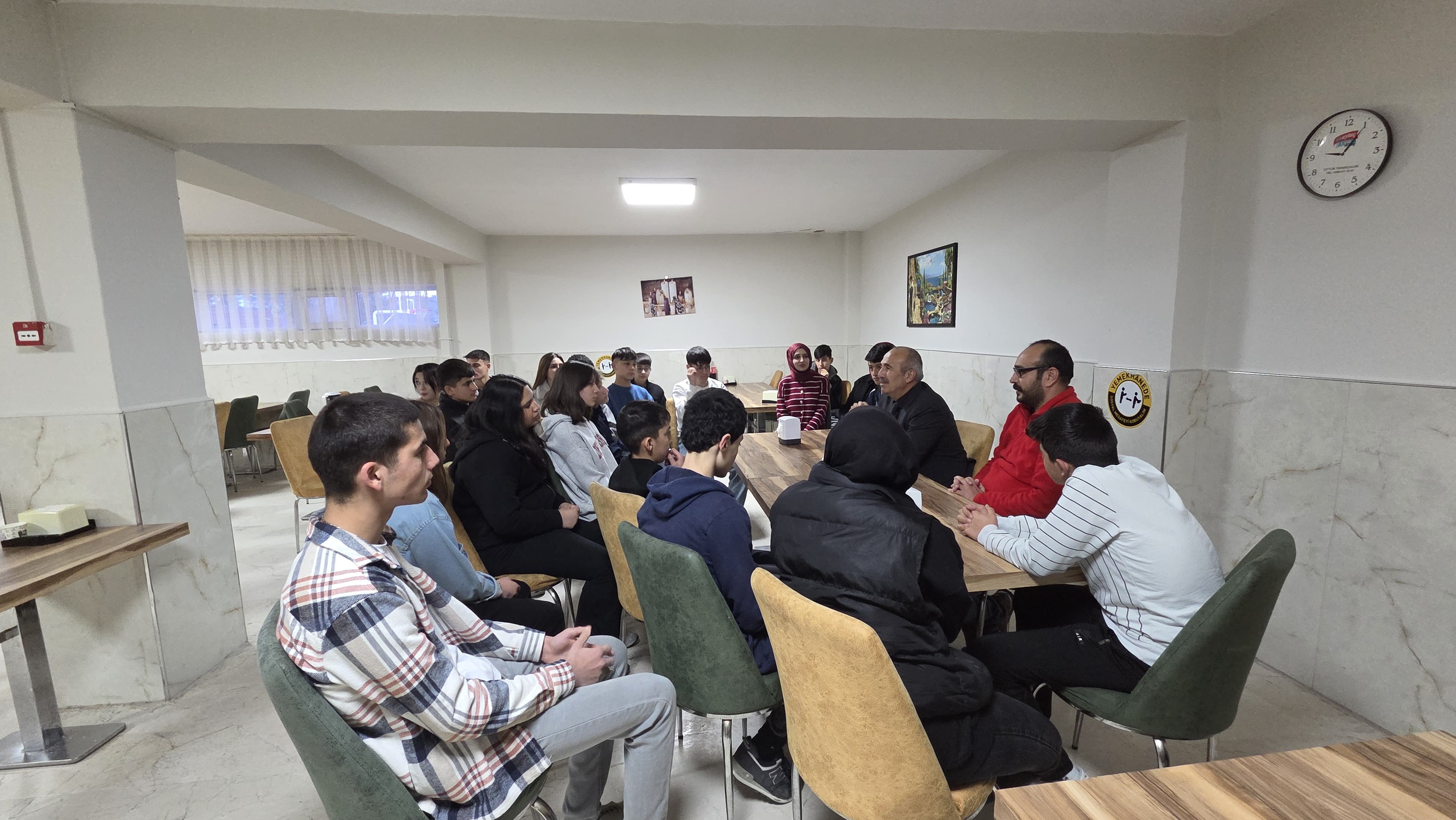 YOZGAT İL MİLLİ EĞİTİM MÜDÜRLÜĞÜ TARAFINDAN BAŞLATILAN İFTARDA BULUŞALIM PROJESİ KAPSAMINDA MESLEKİ VE TEKNİK EĞİTİM ŞUBE MÜDÜRÜ MAHMUT KARAAĞAÇ PANSİYONUMUZA ZİYARETTE BULUNDU. ZİYARETİNDE ÖĞRENCİLERLE RAMAZAN AYI, İYİLİK SEVGİ SAYGI HOŞGÖRÜ GİNİ KONULARDA YATILI ÖĞRENCİLERİMİZLE HASBİHAL ETTİKTEN SONRA ÖĞRENCİLERLE BERABER İFTAR YAPILDI.